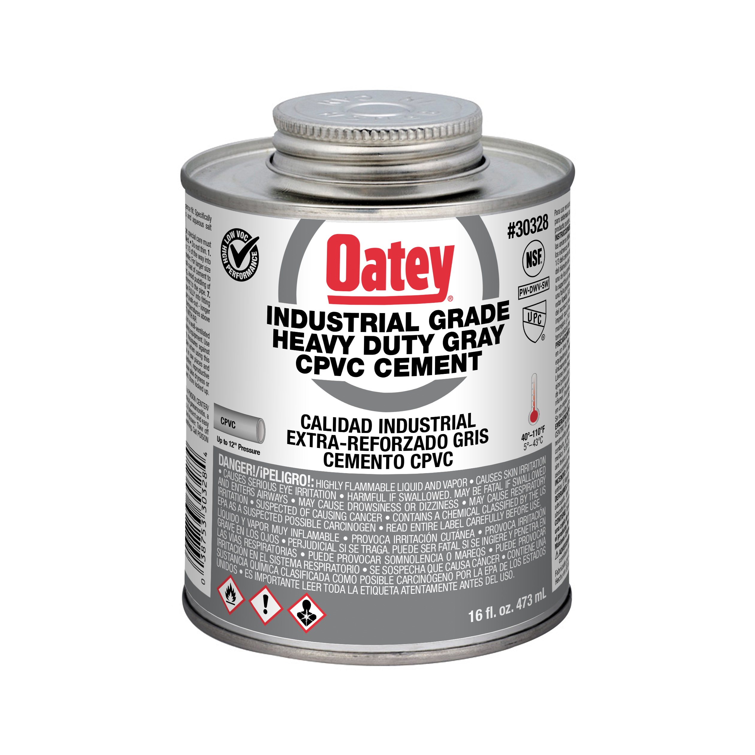 Il cemento CPVC grigio per uso industriale Oatey® è consigliato per le applicazioni che richiedono una resistenza chimica ai prodotti caustici, tra cui ipoclorito, acidi minerali e soluzioni saline acquose. Può essere utilizzato con tutti i materiali in PVC e CPVC, compresi i sistemi di tubazioni Corzan® CPVC, ed è facile da applicare grazie al dauber incluso nel coperchio. Il suo indicatore UV consente di ispezionare in modo semplice e veloce le giunzioni a secco utilizzando qualsiasi fonte di luce ultravioletta. Questo cemento grigio, a basso contenuto di VOC e a corpo pesante, può essere utilizzato per saldare a solvente tubi e raccordi in CPVC Schedules 40 e 80 e tubi e raccordi in PVC fino a 12 pollici di diametro, oltre ad altre classi e schedules con accoppiamento per interferenza. È resistente ai caustici e agli ipocloriti fino al 15% di soluzione. Prima di utilizzare il prodotto con soluzioni chimiche, consulta la Tabella di resistenza chimica EP 42 per verificarne la compatibilità. I prodotti Oatey hanno guadagnato la fiducia dei professionisti del settore idraulico per oltre 100 anni.