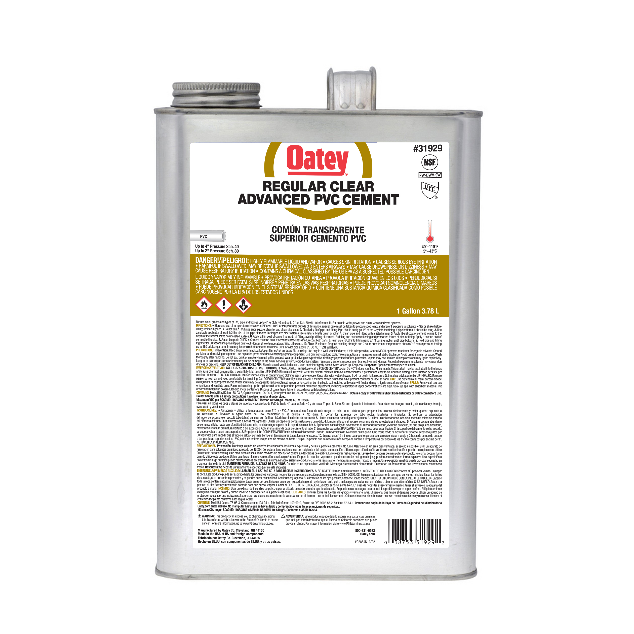 Oatey Gallon Regular Clear Advanced PVC Cement
