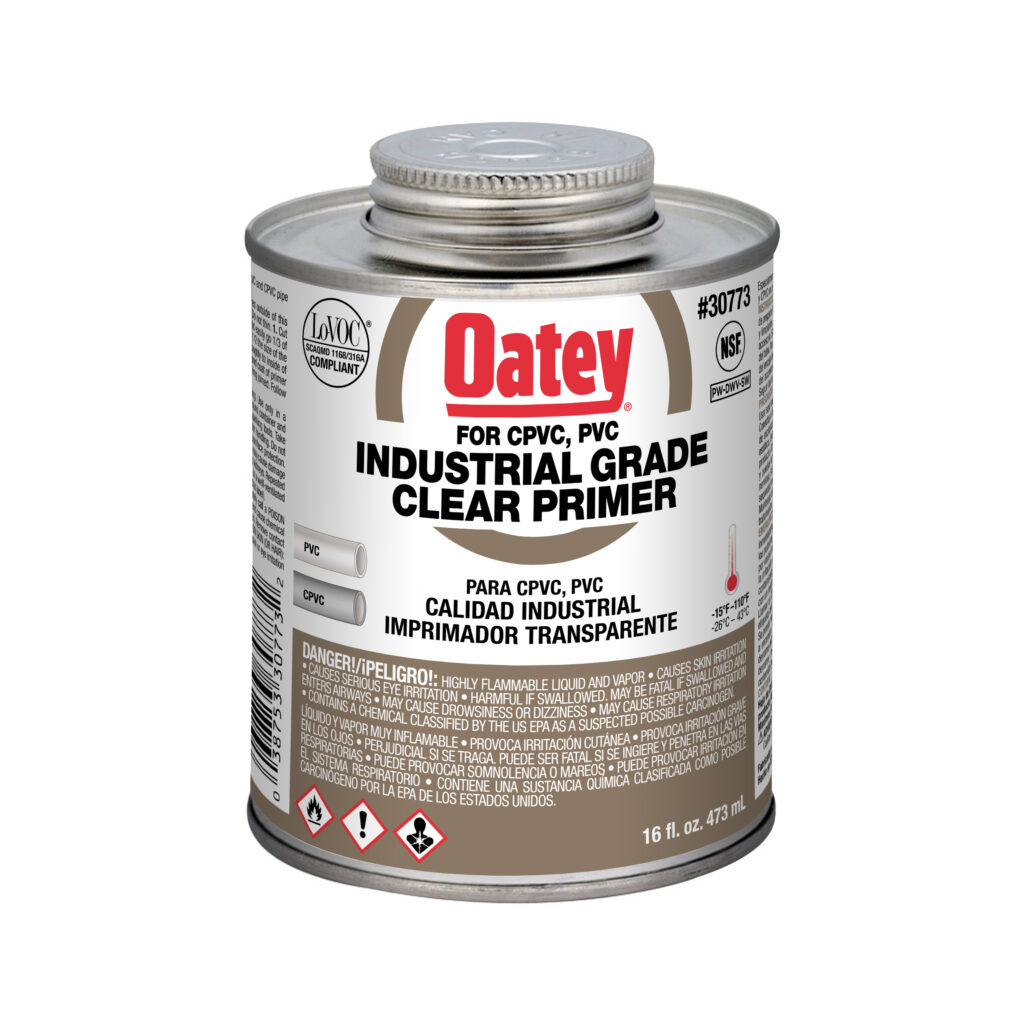 Oatey® Industrial Grade Clear Primer è un primer aggressivo, certificato NSF, da utilizzare su sistemi di tubazioni termoplastiche commerciali e di grande diametro, in particolare CPVC Sch. 40 / 80. È formulato per l’uso su tubi e raccordi in PVC e CPVC in applicazioni a basse temperature. Rimuove i contaminanti come lo sporco superficiale, il grasso e la sporcizia e ammorbidisce la superficie del tubo per consentire una saldatura a solvente rapida e sicura. La sua finitura trasparente non macchia la maggior parte delle superfici e si applica facilmente con il pennarello incluso nel coperchio. I prodotti Oatey hanno guadagnato la fiducia dei professionisti del settore idraulico per oltre 100 anni.